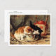 Carte postale d'art avec le tableau Tea Time (1905) Henriëtte Ronner-Knip (1821-1909), peintre néerlandais-belge du mouvement romantique, célèbre pour ses représentations de chiens et de chats. L'oeuvre dépeint une adorable scène de chatons sirotant une tasse avec une théière en porcelaine rouge dans l'arrière - plan.