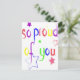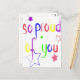 Carte postale magnifiquement conçue par miss T designs. La carte postale dit "Si fière de vous". Faites savoir à quelqu'un à quel point ils ont bien réussi et à quel point vous êtes fier. Conçu avec des couleurs vives et l'effet de coloration.