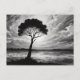 Cette oeuvre d'art spectaculaire en noir et blanc présente un arbre solitaire résistant contre un ciel turbulent. La silhouette crue de l'arbre, ses branches qui s'approchent des cieux, contraste avec les nuages tourbillonnants et l'éclairage spectaculaire. La vaste étendue d'eau reflète le drame du ciel, créant un sentiment de profondeur et de mystère. L'oeuvre évoque des sentiments de solitude, de force et de résilience, nous rappelant la puissance durable de la nature.