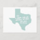 Avec la silhouette de la silhouette de la grande et belle situation du Texas rempli d'un arrière - plan vert clair solide et le surnom des états "L'État étoilé solitaire" écrit en face de cette carte postale est une excellente idée pour envoyer une note manuscrite personnelle à quiconque dans l'État étoilé solitaire.