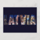 Carte Postale Texte de Lettonie avec arbre de Noël éclairé