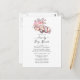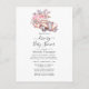 Invitation de douche de mariage ou de bébé en voiture avec une vieille voiture de sport ornée de roses aquarelle rose personnalisable selon les spécificités de votre événement.
