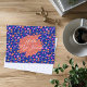 Hand-drawn floral postcard with custom text on the front. Say hello to a friend, with a pretty postcard design. Colorful, tiny flowers on blue and the design carries to the back of the card. Sample text on the front, over an orange paintbrush layer is, "Hello my friend". Customize it to any greeting.