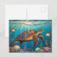 Carte Postale Tortue de verre, Poisson, Corail, Océan