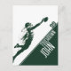 Cette carte postale très personnalisable sur le thème du football offre une scène d'action où un joueur de football vole pour attraper la balle au-dessus de la ligne de toucher. C'est un design génial pour les joueurs de football américains amateurs ou pro où vous pouvez customiser le nom, le numéro de maillot, et le message.