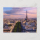 Vue sur Paris, France, dominée par la Tour Eiffel et un paysage spectaculaire de nuages violets. Photo de Moyan Brenn