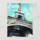 Carte postale Tour Eiffel Retro Paris je t'aime en Turquoise Paris je t'aime