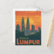 Célébrez l'énergie vibrante de la capitale malaisienne avec cette affiche de style rétro. L'architecture présente une magnifique illustration vintage de l'emblématique tour Petronas dressée contre un coucher de soleil, entourée par un paysage urbain luxuriant. Cette affiche est parfaite pour les amateurs de voyage, les amateurs de design rétro, ou toute personne qui veut une pièce design et unique de l'art mural pour se souvenir de leur passage à Kuala Lumpur.