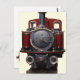 train vintage dans le style steampunk dans les couleurs rouge et bleu avec roues, fenêtres, nez, écrous et boulons, anneaux métalliques, façade en métal rouge, et bleu gris et ressemble à un jouet. photographie couleur de l'avant d'un ancien train à vapeur dans des couleurs métalliques doux en rouge et bleu.