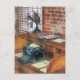 Designs by Susan Savad — Le maître de gare était la personne responsable de la gare. Ce bureau du maître de station pittoresque contient une machine à écrire à l'ancienne et un ventilateur vintage avec des lames sur un bureau en bois avec des trous de cubes.