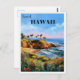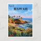 Voyagez à Hawaï, illustration pittoresque, de beaux palmiers, des plantes luxuriants avec des vagues ondulantes.