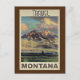 Voyagez dans le Montana, poster vintage pittoresque, montagnes, train et beau ciel arrière - plan.