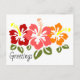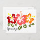 Envoyez des salutations à toute personne avec un trio de jolies fleurs d'hibiscus. Il présente des fleurs d'hibiscus rouges, roses et oranges avec une police manuscrite mignonne.