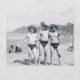 Cette carte postale comporte une photographie vintage de trois hommes ayant l'amusement dans des casquettes idiots sur la plage.