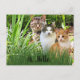 Carte Postale Trois chats Tabby dans le jardin "Bonjour"