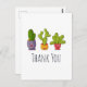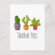 Une carte postale de remerciement amusante avec une illustration fantaisiste représentant 3 petits cactus heureux assis dans leurs propres pots de fleurs. Chacun d'eux a sa propre expression unique, souriant et ayant l'air heureux.