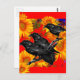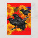 CARTE POSTALE TROIS OISEAUX NOIRS DANS DES CHAMPS DE SOUFFLE