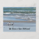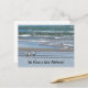 Une aquarelle de trois sternes communes sur une plage, avec du sable et des vagues dans l'arrière - plan, annonce que vous avez une nouvelle adresse sur cette carte postale. Le dos est laissé vide pour que vous puissiez customiser avec vos détails.