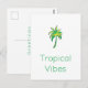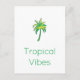 Tropical palm tree card with bright green and yellow design and a centered “Greetings from paradise” message inside.