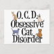 J'adore mes chats. J'ai le TOC, Trouble obsessionnel des chats. Un cadeau amusant de chaton qui ferait un excellent cadeau pour quelqu'un qui aime les chatons mignons. Les différentes races de chats rampent sur les lettres de cette carte postale amusante pour les chats.