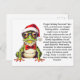 Sautez les fêtes avec des conseils délirants de cette amie de grenouille festive ! Emballé d'humour amphibien et de sagesse des coussins de lys, chaque message est sûr de vous faire croquer de rire. Que vous vous sentiez un peu frogé ou que vous ayez besoin d'une dose de plaisir festif, cette carte postale ajoutera un peu de charme marécageux à votre journée. Laissez-vous guider par cette grenouille pleine d'esprit et partagez dès aujourd'hui un peu de plaisir !