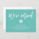 Ces faire-part mobiles d'adresse moderne et tendance présentent une typographie manuscrite élégante et blanche qui dit "nous avons bougé", sur un arrière - plan turquoise coloré et léger. Une petite maison assortie orne également l'avant, et il y a de la place pour ajouter un message sur le dos si vous souhaitez avec plus d'informations sur votre nouvelle maison. Une façon simple et élégante de faire savoir à vos amis et à votre famille que vous avez déménagé !