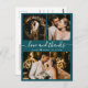 Moderne, Élégant Lettré Main Turquoise Mariage 3 Photo Collage Merci Postard. Modèle minimaliste mariage avec trois (3) photos sur le devant et une photo sur le dos. Avec le texte "Amour et merci" dans une tourbillonnant police de script de typographie lettrée à la main avec des swashes en couleur blanche sur turquoise vert foncé arrière - plan. Petite forme de coeur entre les noms. Personnalisez votre nom et merci message. Si vous préférez écrire votre note à la main, supprimez simplement l'exemple de texte pour gagner de l'espace. Si vous avez besoin d'aide ou de l'article correspondant, veuillez me contacter !