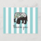 Carte Postale Turquoise Rayure Paisley Eléphant Merci