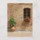 Typical redish brick of Tuscany with red flowers at the window and in the urn