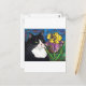 Carte Postale Tuxedo Chat Iris Fleur Papillon Tiré