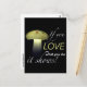 Cette conception présente ma photographie en gros plan d'un champignon solaire en céramique lumineux avec des gouttes d'eau sur une soirée sombre avec un message inspirant "Si vous aimez ce que vous faites, cela se voit !" Le verso de la carte propose trois blocs de texte de modèle que vous pouvez facilement modifier, conserver ou supprimer pour toute occasion spéciale ou message. Vous pouvez également mettre la carte postale dans un cadre avec un passe-partout comme idée de cadeau. Conception et photographie ©Patricia AZ Phillips