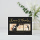 Magnifique typographie fausse feuille d'or sur le devant de cette carte postale design dans laquelle vous pouvez télécharger avec 3 de vos propres portraits photo fiançailles/mariage. Personnalisez facilement et rapidement ce concepteur imprimé professionnellement merci carte postale ici et maintenant en tapant sur l'exemple de texte et en ajoutant vos propres photos. Élégant, chic, simple et classe écriture or / typographie cursive. Le fabuleux exemple de photographie utilisé dans ce modèle est grâce au talentueux photographe, Carrie Keller Bitting of the Woven Nest Photography Pty Ltd - North Carolina, USA.