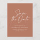 Typographie moderne classe mariage audacieux enregistrer la carte de date. Avec une typographie contemporaine moderne et élégante en terre cuite et design blanc. Les couleurs peuvent être customisées.