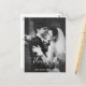 Carte postale Mariage de typographie moderne avec un élégant script blanc à l'avant et un script noir à l'arrière. Ajoutez facilement votre photo et votre texte personnalisés à l'avant et à l'arrière de la carte postale.