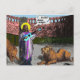 Une caricature un peu irrévérencieuse d'une figure dans une tanière de lions avec un ukulélé chantant "Le Lion dort ce soir."