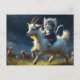 Carte Postale Un adorable chat chevauchant une chèvre