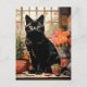 Carte Postale Un beau chat noir dans les plantes domestiques