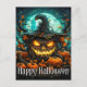 Cette carte postale Happy Halloween unique présente l'illustration d'un citrouille éffrayant, sous une pleine lune, au fond de la forêt. N'hésitez pas à ajuster toutes les options disponibles comme vous le souhaitez.