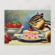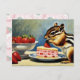 Cette peinture enchanteresse saisit un moment de fantaisie où un curieux chipmunk découvre l'allure sucrée d'un gâteau à la fraise. Le chipmunk est représenté avec des détails exquis et des couleurs réalistes, mi-action, en tenant sur une fraise levée du gâteau; ses yeux sont grands mettant en avant la curiosité et le plaisir. La toile de fond est peinte dans des teintes douces de bleu et de vert, créant une atmosphère sereine qui accentue le sujet. Les fraises, lustres et mûres, sont illustrées avec la précision d’un artiste - leur teinte rouge vif dessinant l’oeil et complétant les tons chauds de la fourrure de chipmunk. Ce morceau est un délicieux mélange de beauté naturelle et d'imagination ludique, ce qui en fait un ajout charmant à toute collection de cartes postales. Il conviendra parfaitement à ceux qui apprécient l'art de la faune sauvage, la nature et l'art capricieux.