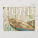 © Daphne Brissonnet / Pomme sauvage. Image vintage d'un étang avec un bateau bleu accosté. Le mot Pond peut être vu au-dessus de l'image.