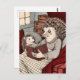 Carte Postale Un hérisson dans une couverture lisant un livre à