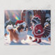 Carte Postale Un joli Raccoon et très mignon chien Festin Noël