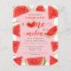 Une carte postale "One In A Melon" pour le premier anniversaire à pastèque douce rose. "Little Sweetie Is One In A Melon" une fête de premier anniversaire sur le thème de la pastèque pour un an.