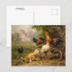 Carte postale avec le tableau A watchful Eye (Ein Wachsames Auge) (1916), de l'artiste allemand Carl Jutz (1838-1916). Il était connu pour ses peintures de paysages, de natures mortes et d'études de la nature. Une scène de ferme avec coqs et poulets près de la grange.