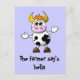 Carte Postale Un paysan dit Hello Funny Cartoon Cow