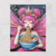 Une jolie fée aux cheveux roses et ailes portant une couronne d'or et mangeant un bol délicieux de ramen imaginaire L'art généré par l'IA