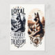 Illustration numérique d'un chien berger allemand assis sur un banc dans un parc, entouré par la nature, avec un design en forme de coeur et le texte A Loyal Hearts Treasure dans un style vintage. L'image est en deux versions, une en noir et blanc et une en couleur.
