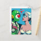 Carte Postale Une femme Alien et un robot vert dans l'amour