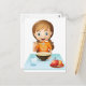 Carte Postale Une fille souriante qui mange son petit-déjeuner