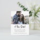 Photo Enregistrer la date avec une nouvelle date de mariage. Design moderne et optimisé avec script de brosse. Le backside a un message personnalisé avec les détails du changement de date et une URL du site Web mariage. Options de personnalisation disponibles. Veuillez envoyer un courriel à slycoconut.designs@gmail.com avec toute question.